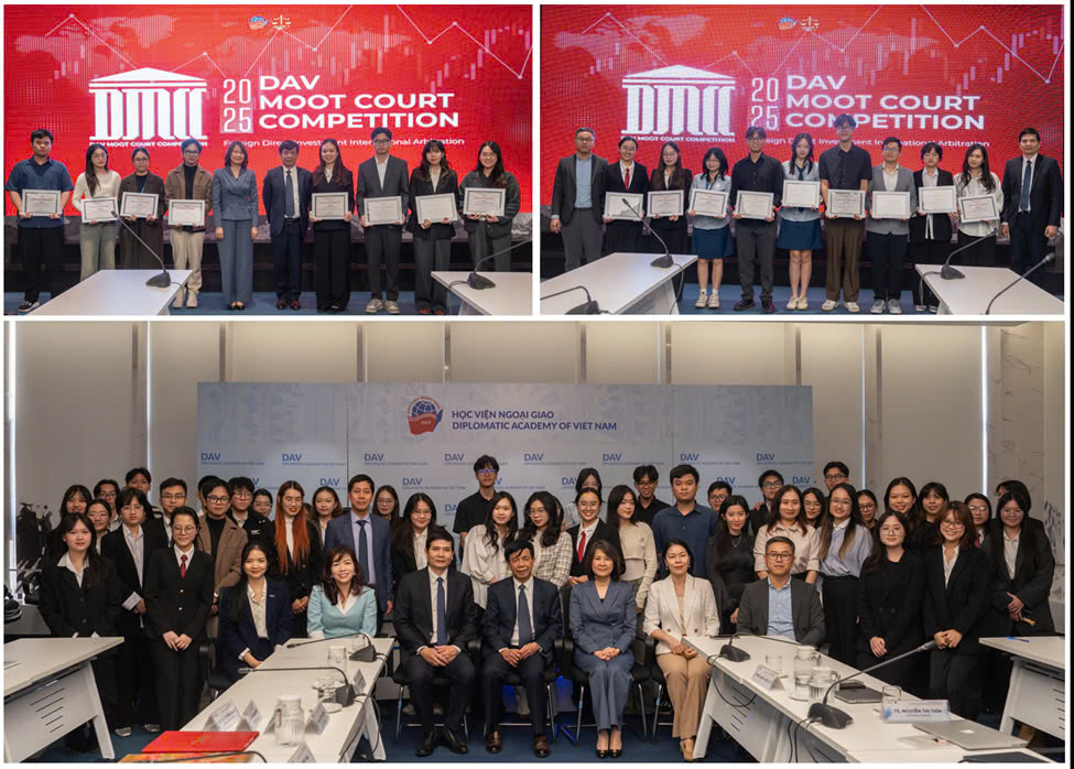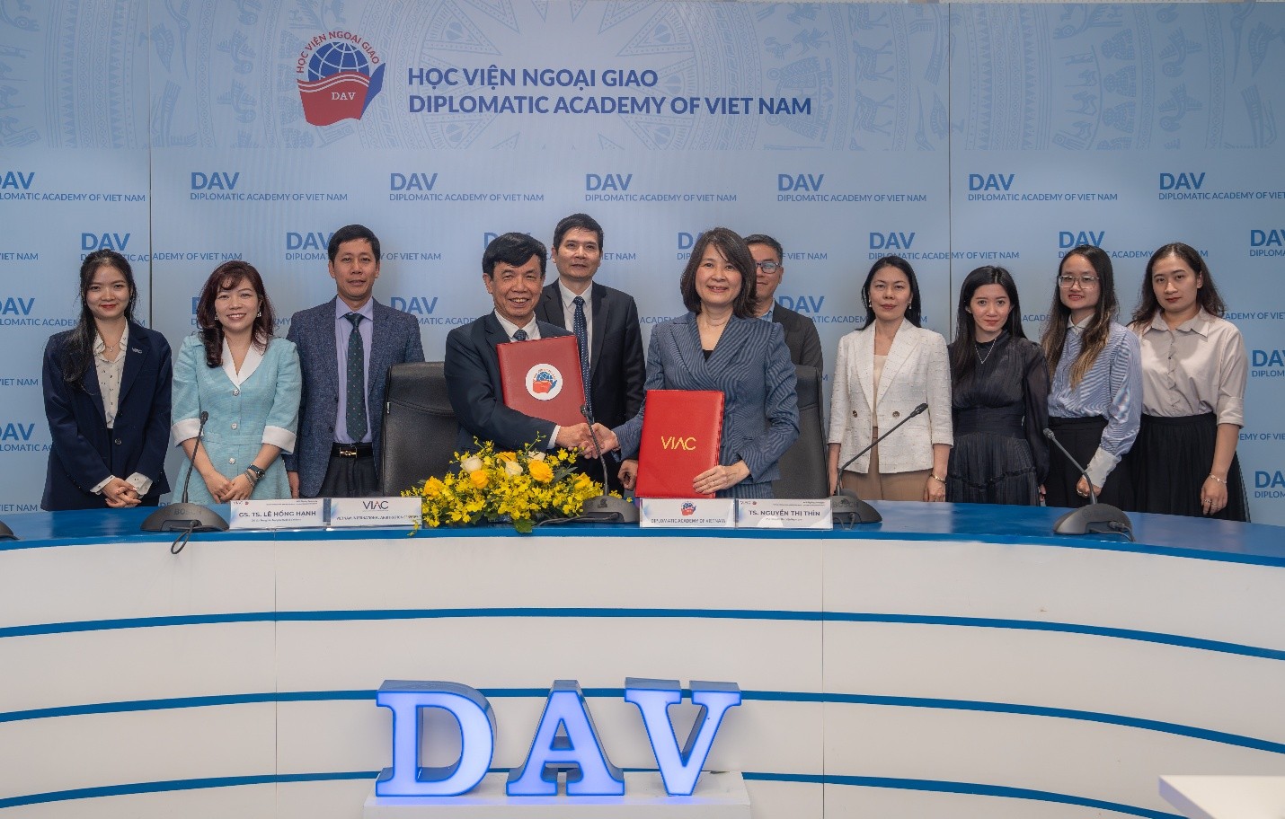 On the afternoon of December 8, 2025, at the Diplomatic Academy of Vietnam (DAV), the signing ceremony of the Memorandum of Understanding (MoU) between the Vietnam International Arbitration Center (VIAC) and the Diplomatic Academy of Vietnam (DAV) took place, attended by Prof. Dr. Le Hong Hanh – President of VIAC, and Dr. Nguyen Thi Thin – Vice Director of DAV, witnessed by representatives of both institutions. Following the signing ceremony, the DAV Moot Court Competition 2025 was officially launched, marking the beginning of a series of professional cooperation activities between the two parties.