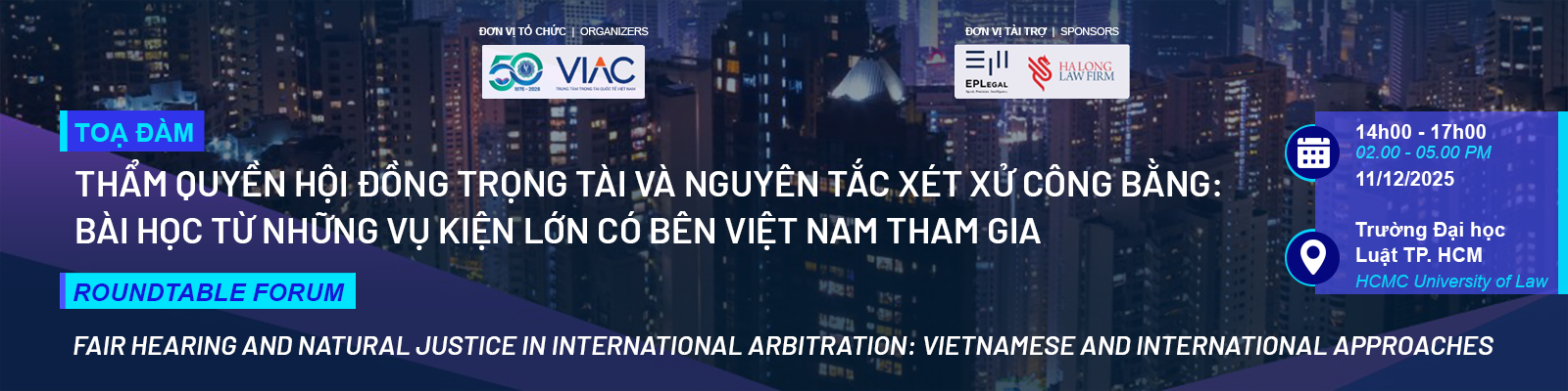 Recognizing the significance and impact of the due process principle on arbitral procedures, as well as the practical issues that may arise during dispute resolution, the Vietnam International Arbitration Centre (VIAC), in cooperation with the Faculty of International Law of Ho Chi Minh City University of Law, and with the support of EPLegal LLC and Ha Long Law Firm, organizes the Roundtable forum titled “Fair hearing & natural justice in international arbitration: Vietnamese and international approaches”. The roundtable aims to provide a multi-dimensional perspective from both domestic and international experts on the arbitral tribunal’s jurisdiction and the application of due process in arbitration by analysing notable cases; thereby, offering insights and recommendations for appropriately applying the fairness when resolving disputes in arbitration
