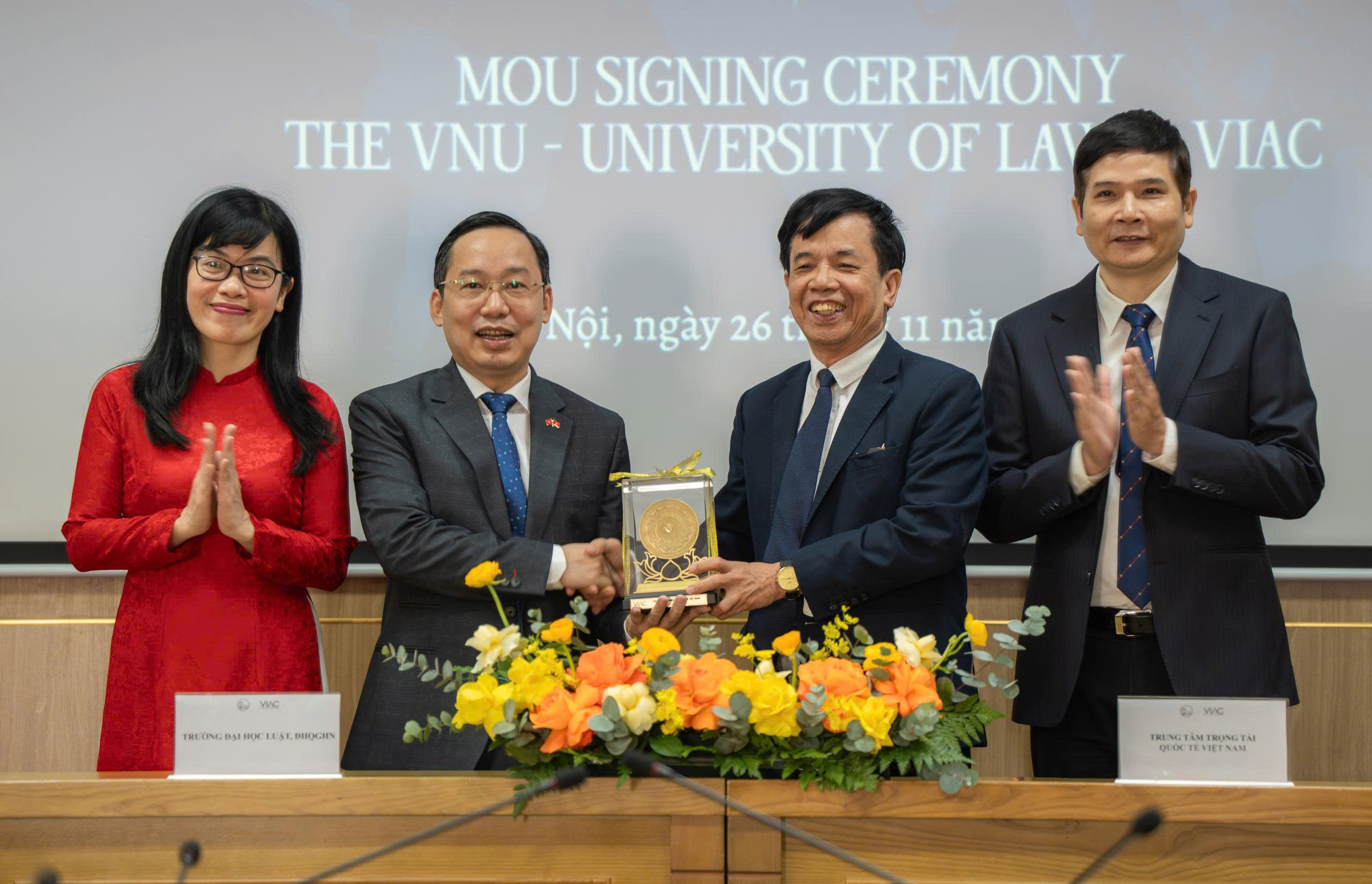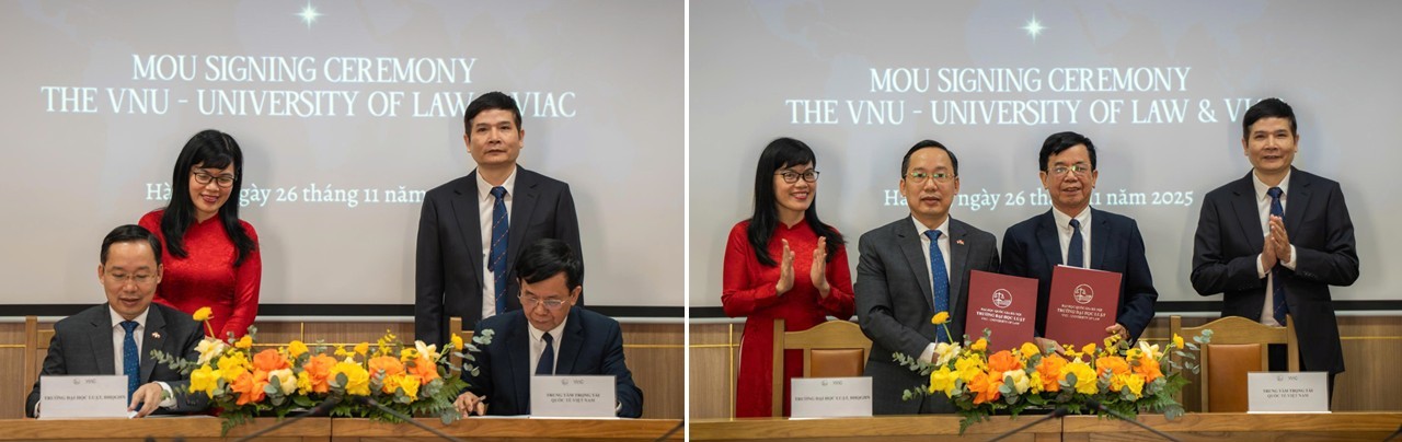 On the morning of November 26, 2025, at the University of Law, Vietnam National University, Hanoi (VNU-UL), the signing ceremony of the Memorandum of Understanding (MoU) between the Vietnam International Arbitration Center (VIAC) and VNU-UL took place with the participation of Prof. Dr. Le Hong Hanh – President of VIAC, and Assoc. Prof. Dr. Trinh Tien Viet – Acting Principal of VNU-UL, in the presence of representatives from both institutions as well as domestic and international partners.