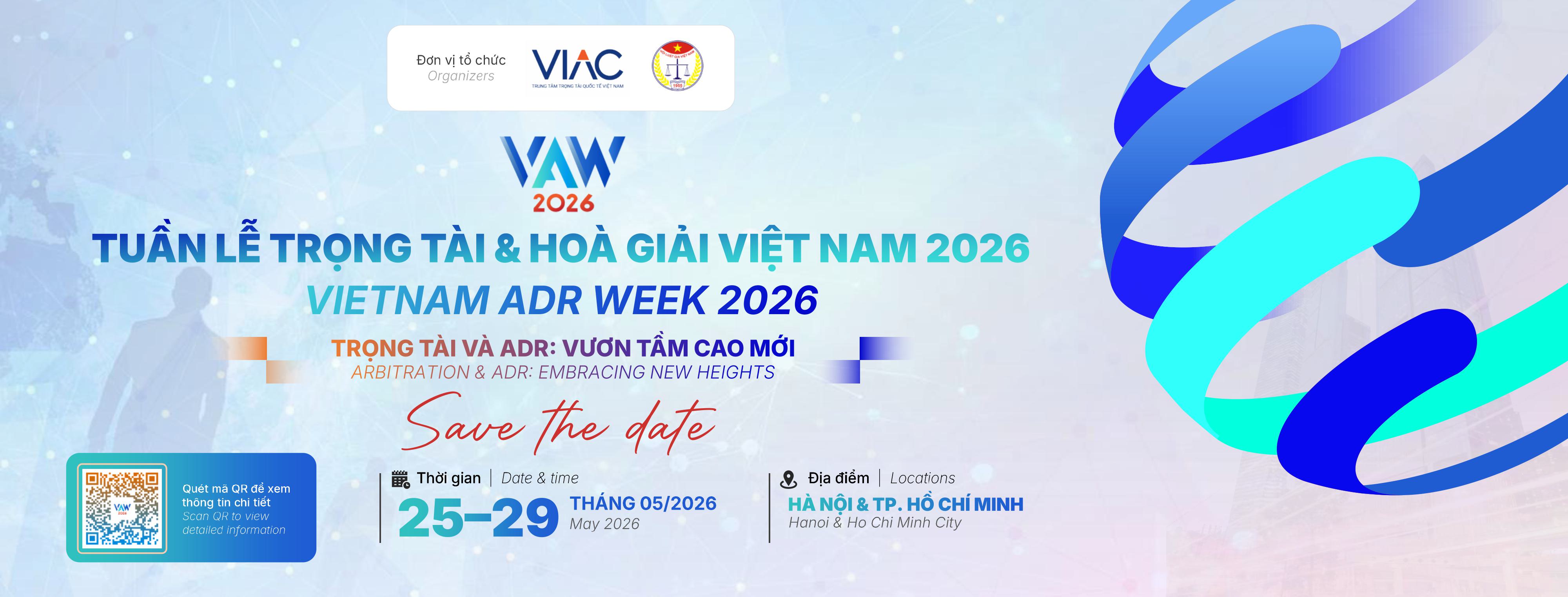 The Vietnam International Arbitration Centre (VIAC), in coordination with the Vietnam Lawyers Association officially announces the organization of Vietnam ADR Week 2026 (VAW 2026) under the theme “Arbitration & ADR: Embracing New Heights”. The program will take place from May 25 to 29, 2026, in Hanoi and Ho Chi Minh City, alongside a series of online activities.
