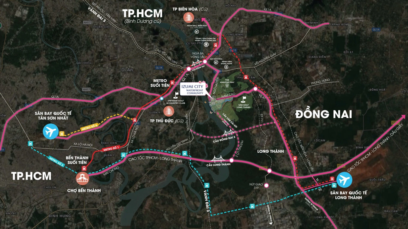 Các tuyến đường cao tốc, metro, vành đai và sân bay quốc tế cùng hội tụ ở phía Đông TPHCM, mở ra cơ hội gia tăng giá trị bất động sản (Ảnh: CĐT).