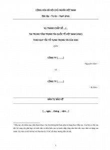 Mẫu này chỉ nhằm mục đích tham khảo. Các bên không bắt buộc phải sử dụng theo Mẫu này. Các bên có thể sửa đổi, bổ sung cho phù hợp với tính chất và diễn biến của vụ tranh chấp cũng như nhu cầu, mục đích sử dụng của mình. Các bên có thể liên hệ với Ban thư ký VIAC để được hướng dẫn chi tiết.