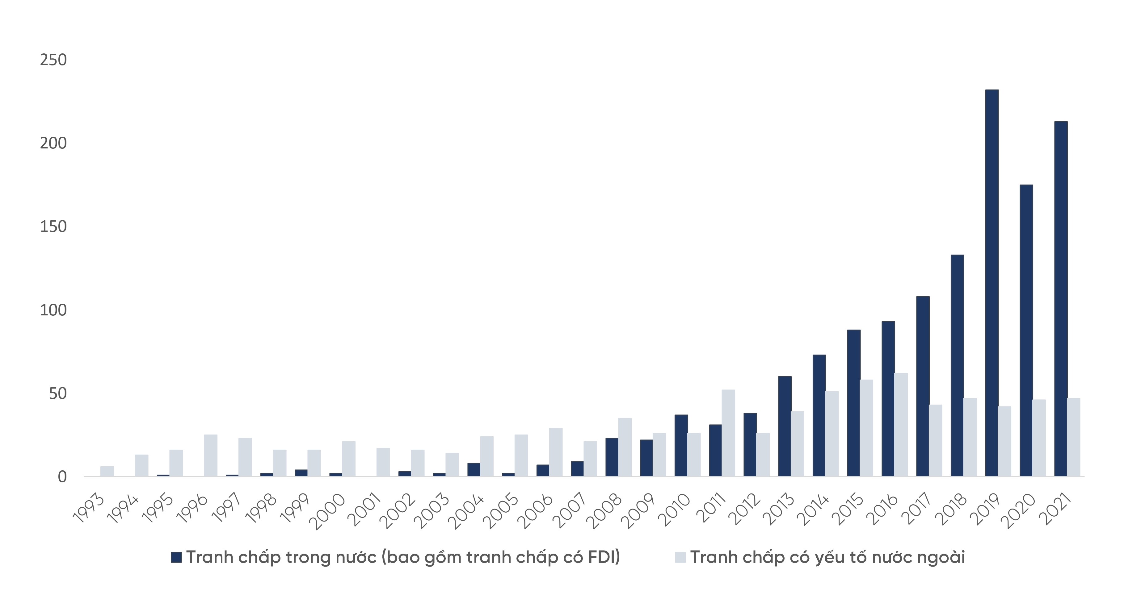 Thống kê tại VIAC ghi nhận các vụ tranh chấp VIAC thụ lý năm 2021 đều có thỏa thuận trọng tài được xác lập cùng thời điểm ký kết hợp đồng. Trong đó, tranh chấp phát sinh từ các hợp đồng ký kết vào năm 2019 và năm 2020 chiếm tổng gần 50%.