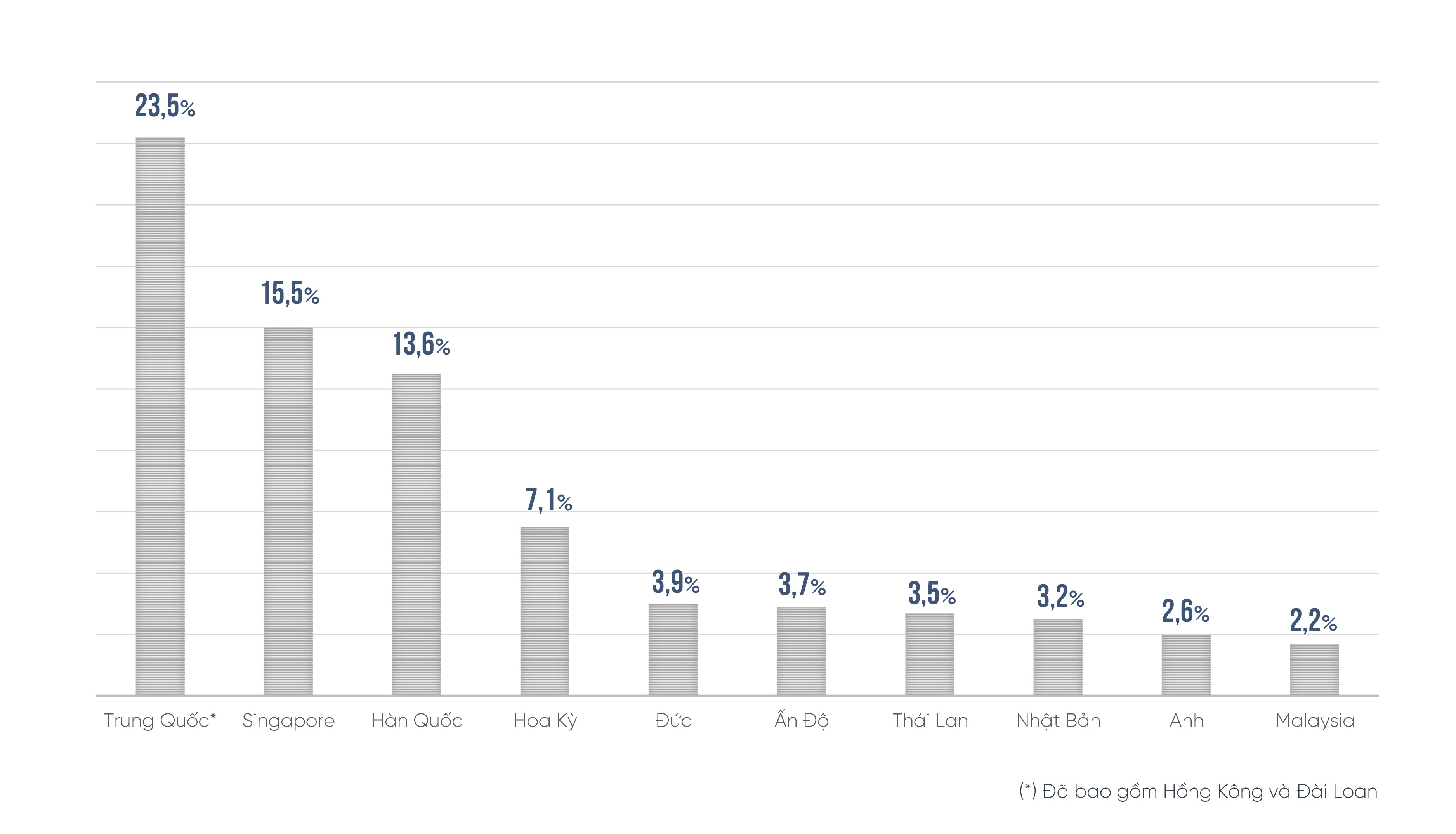 Nhóm 10 quốc tịch các bên tranh chấp tại VIAC năm 2021