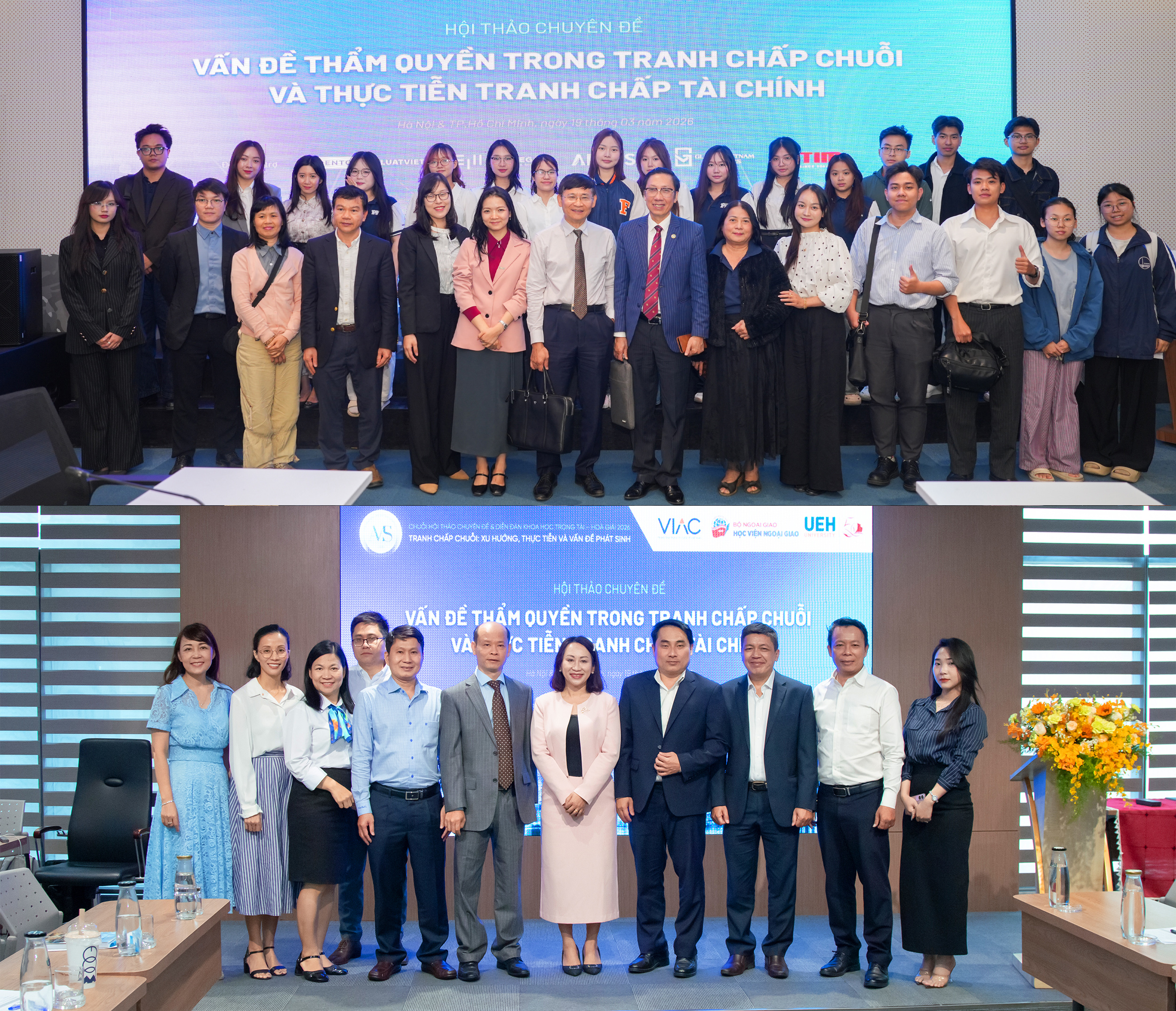 Sáng ngày 19/3/2026, thuộc khuôn khổ Chuỗi Hội thảo chuyên đề và Diễn đàn Khoa học Trọng tài - Hòa giải 2026 (AMS 2026), Trung tâm Trọng tài Quốc tế Việt Nam (VIAC) phối hợp cùng Học viện Ngoại giao (DAV) và Trường Kinh tế, Luật và Quản lý Nhà nước (CELG), Đại học Kinh tế TP. Hồ Chí Minh (UEH) triển khai thành công Hội thảo chuyên đề “Vấn đề thẩm quyền trong tranh chấp chuỗi và thực tiễn tranh chấp tài chính”. Hội thảo quy tụ chuyên gia đến từ nhiều lĩnh vực cùng sự tham gia của hơn 250 đại biểu tham dự song song tại hai điểm cầu Hà Nội và TP. Hồ Chí Minh.