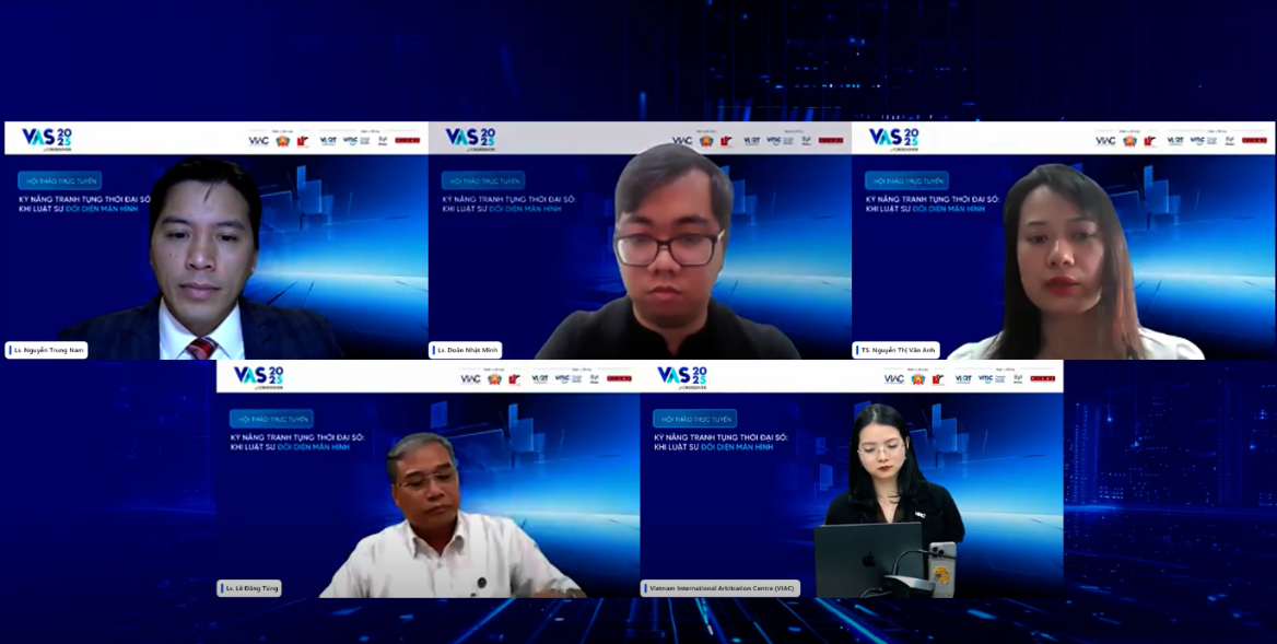 Ngày 18/9/2025, Trung tâm Trọng tài Quốc tế Việt Nam (VIAC) phối hợp cùng Học viện Tư pháp và Đoàn Luật sư TP. Hà Nội tổ chức Hội thảo trực tuyến về “Kỹ năng tranh tụng thời đại số: Khi luật sư đối diện màn hình”, với sự tham gia của hơn 500 người tham dự trên nền tảng Zoom. Hội thảo trên thuộc khuôn khổ Chuỗi sự kiện Giải quyết tranh chấp bằng phương thức Trọng tài thương mại – VAS 2025.