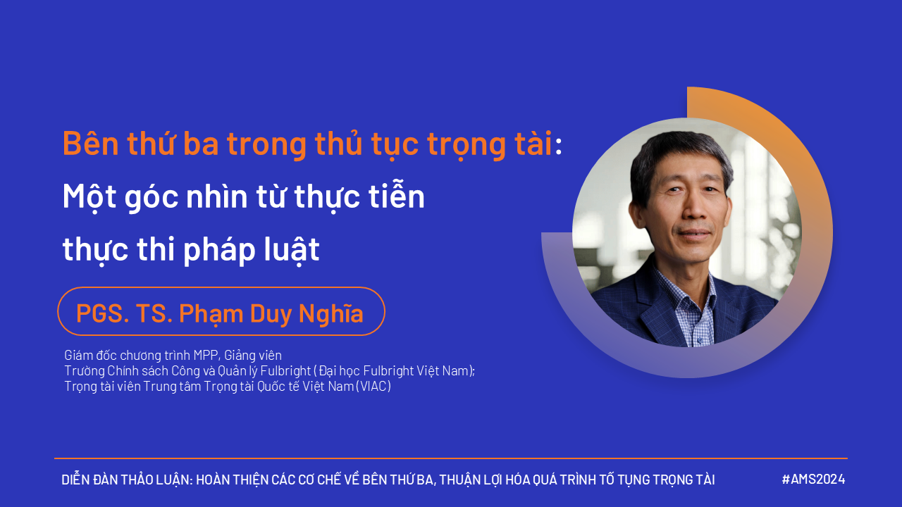 PGS. TS. Phạm Duy Nghĩa – Giám đốc chương trình MPP, giảng viên Trường Chính sách Công và Quản lý Fullbright (Đại học Fullbright Việt Nam), Trọng tài viên Trung tâm Trọng tài Quốc tế Việt Nam (VIAC)