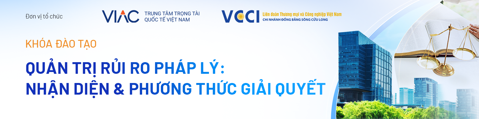 Vì vậy, nhằm đồng hành cùng các nhà lãnh đạo trong việc nâng cao năng lực quản trị rủi ro pháp lý doanh nghiệp; đồng thời cập nhật và dự báo các tác động từ những điều chỉnh mới của Luật Doanh nghiệp đến hoạt động quản lý, Liên đoàn Thương mại và Công nghiệp Việt Nam – Chi nhánh Đồng bằng Sông Cửu Long (VCCI ĐBSCL) và Trung tâm Trọng tài Quốc tế Việt Nam (VIAC) phối hợp tổ chức Chương trình đào tạo “Quản trị rủi ro pháp lý: Nhận diện và Phương thức giải quyết tranh chấp”.
