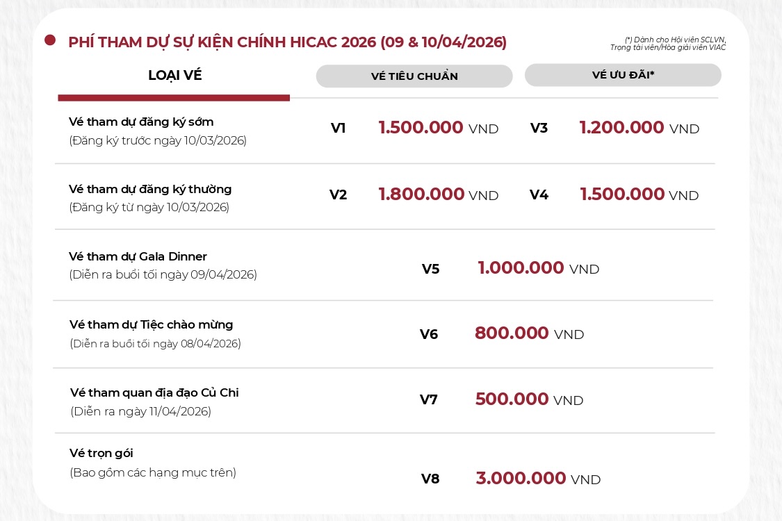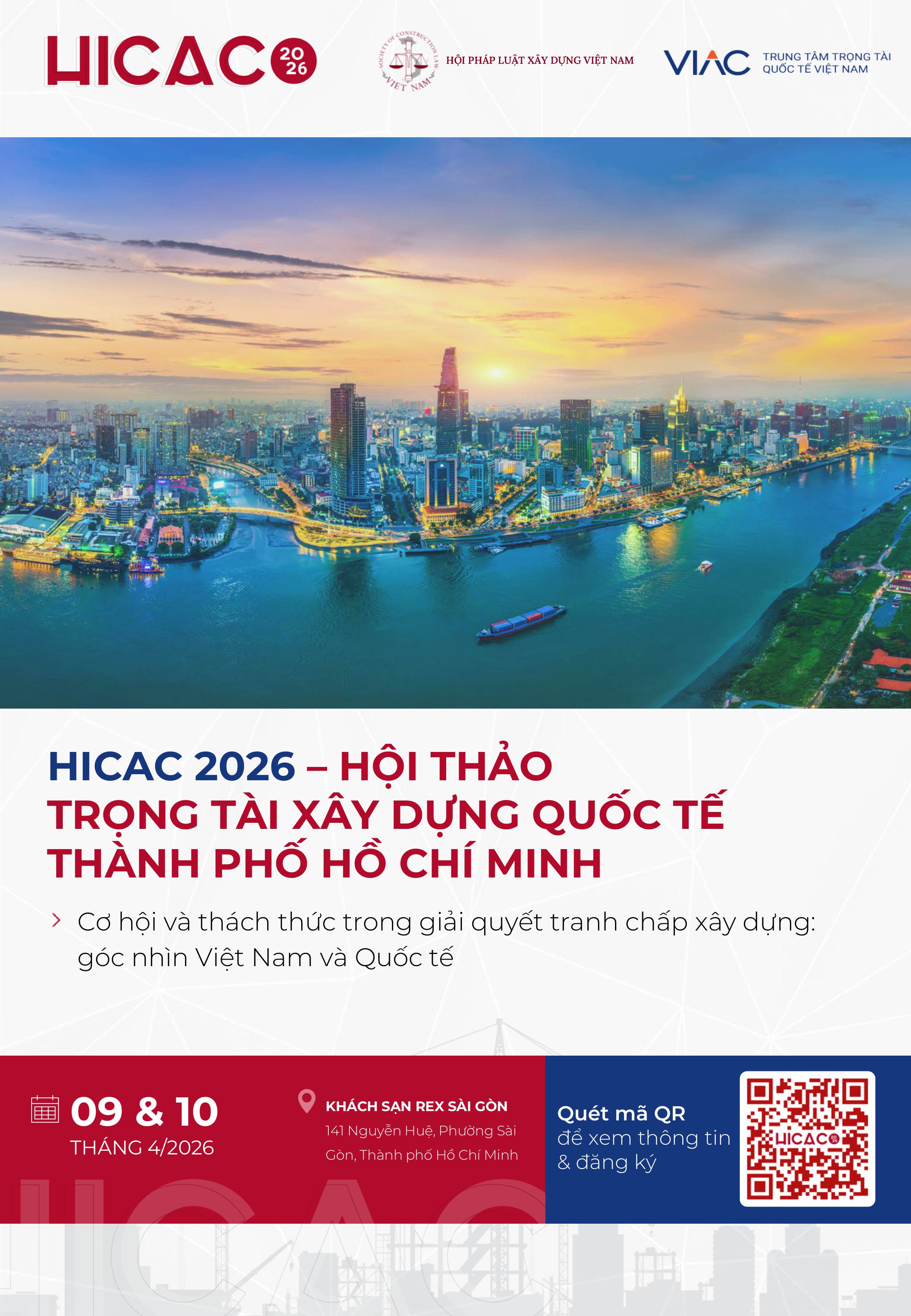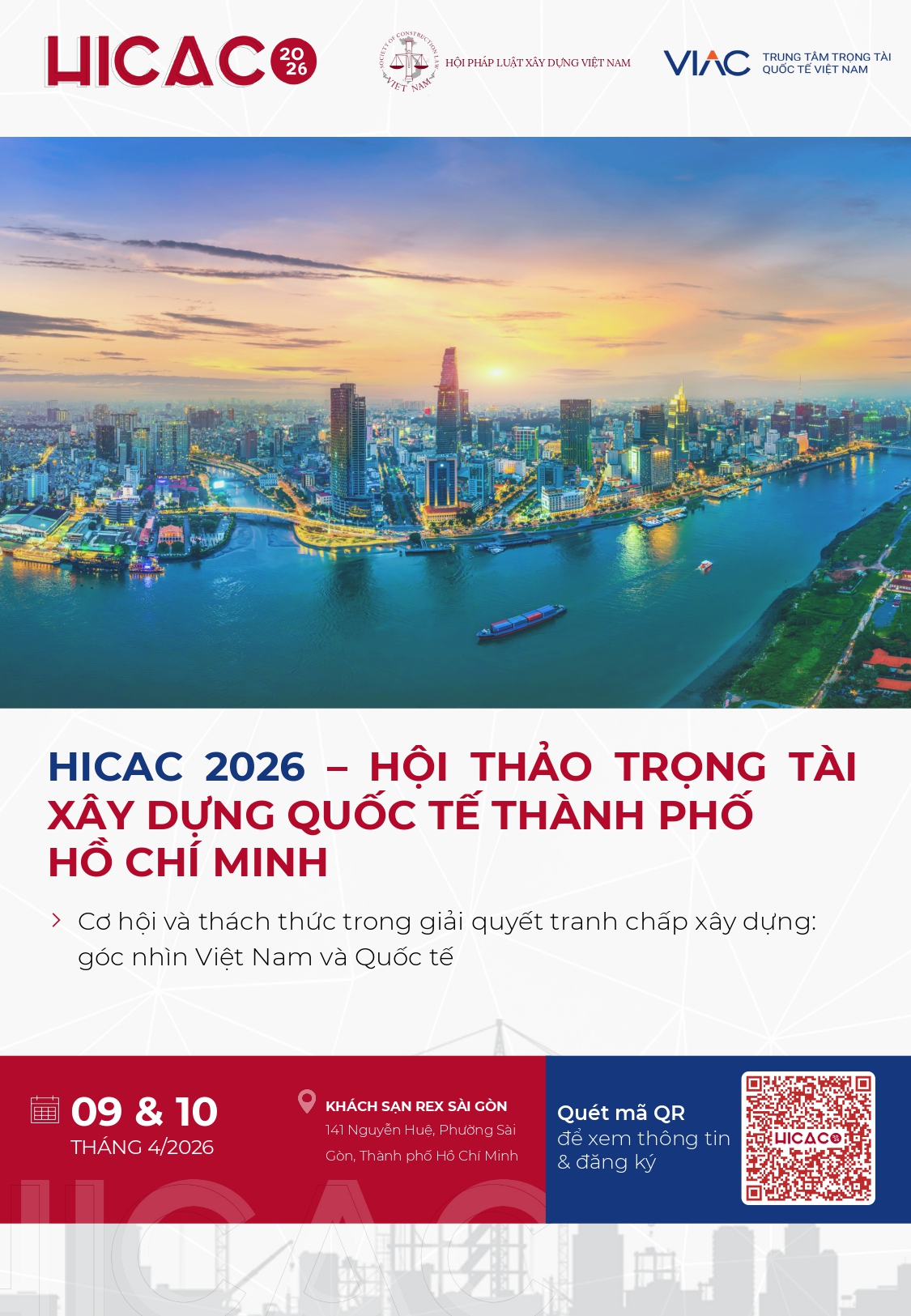 Trung tâm Trọng tài Quốc tế Việt Nam (VIAC) và Hội Pháp luật Xây dựng – Việt Nam (SCLVN) trân trọng thông báo tổ chức Hội thảo Trọng tài Xây dựng Quốc tế TP. Hồ Chí Minh 2026 (HICAC 2026), dự kiến diễn ra tại TP. Hồ Chí Minh, Việt Nam.