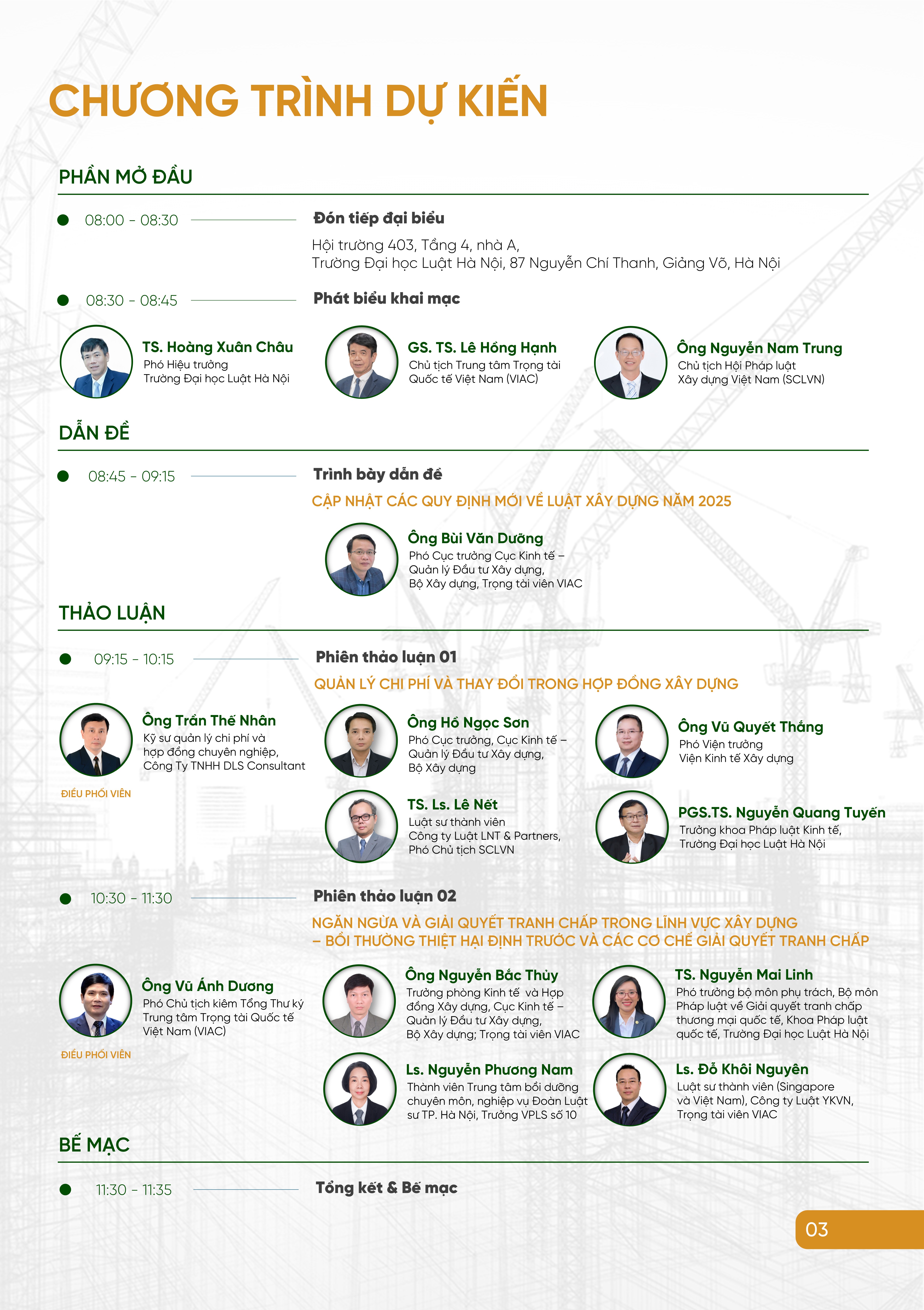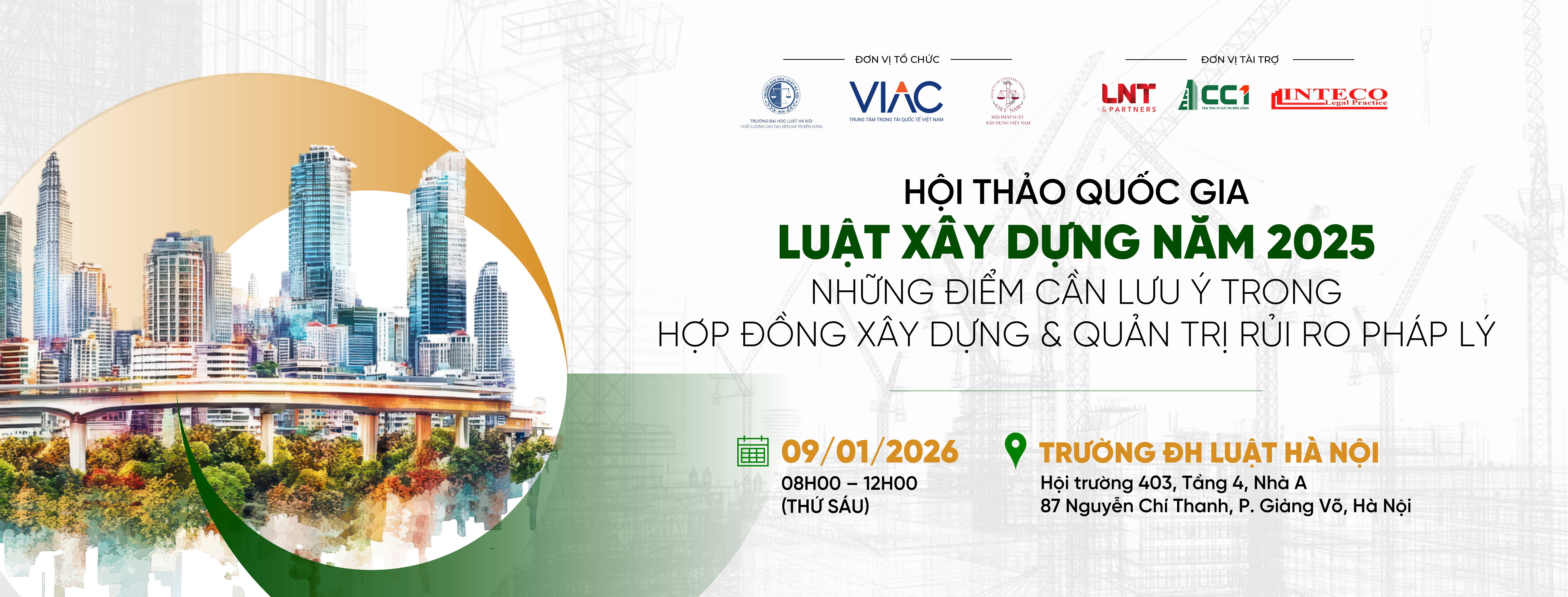 Trên cơ sở đó, nhằm hỗ trợ các cơ quan quản lý nhà nước, doanh nghiệp, luật sư và các chuyên gia hành nghề trong lĩnh vực xây dựng kịp thời cập nhật, nắm bắt các thay đổi quan trọng và vận dụng các quy định mới, Trường Đại học Luật Hà Nội, Trung tâm Trọng tài Quốc tế Việt Nam (VIAC) và Hội Pháp luật Xây dựng Việt Nam (SCLVN) phối hợp đồng tổ chức: