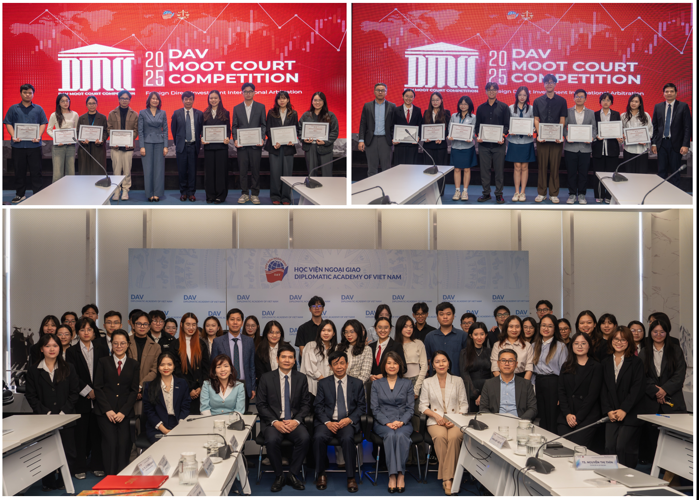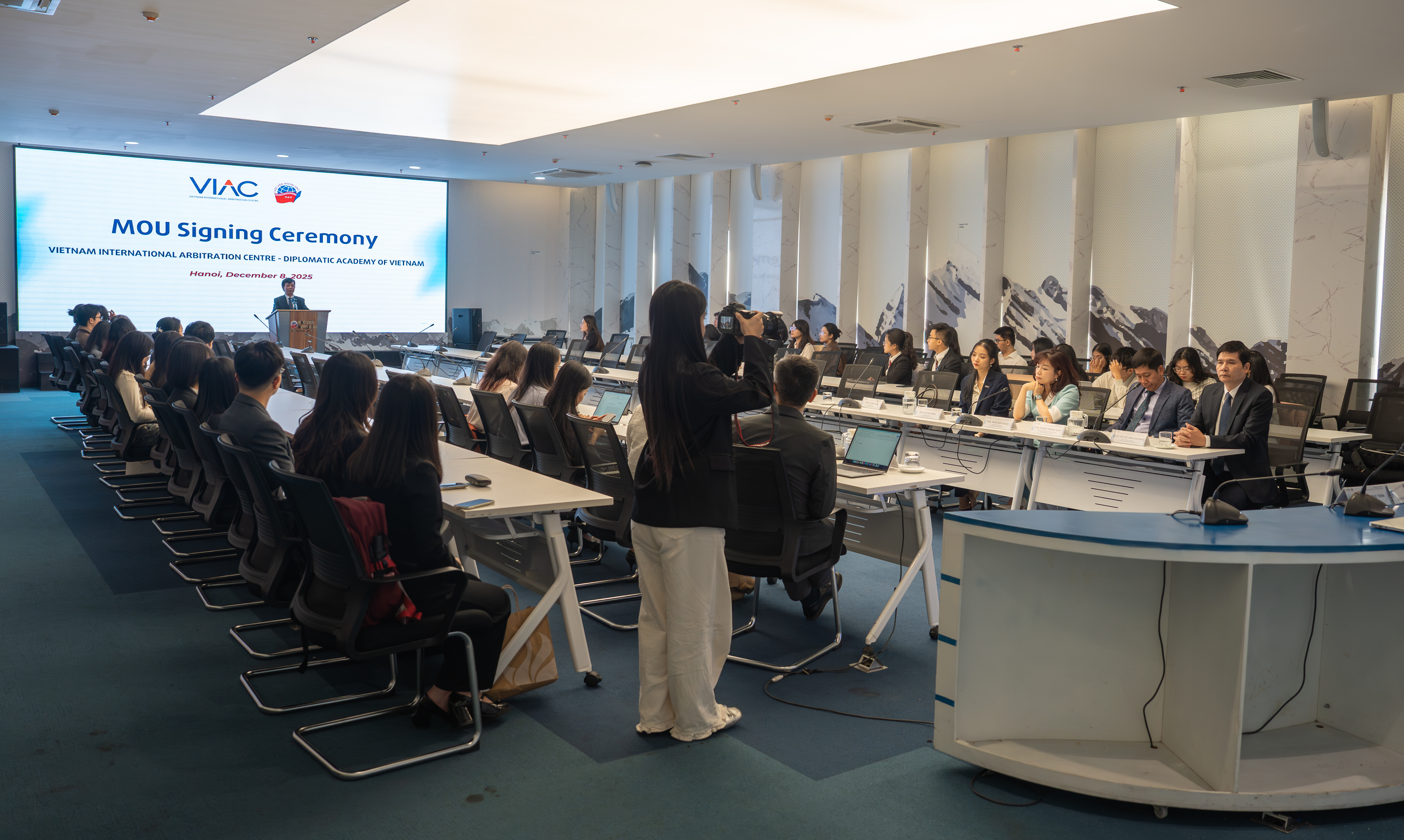 Chiều ngày 8/12/2025, tại Học viện Ngoại giao, Lễ ký kết Biên bản ghi nhớ hợp tác (MoU) giữa Trung tâm Trọng tài Quốc tế Việt Nam (VIAC) và Học viện Ngoại giao đã diễn ra với sự tham gia của GS. TS. Lê Hồng Hạnh – Chủ tịch VIAC và TS. Nguyễn Thị Thìn - Phó Giám đốc Học viện Ngoại giao, trước sự chứng kiến của đại diện hai đơn vị. Ngay sau lễ ký kết, Cuộc thi Diễn án Luật Học viện Ngoại giao 2025 đã chính thức được khai mạc, đánh dấu bước mở đầu cho chuỗi hoạt động hợp tác chuyên môn giữa hai bên.