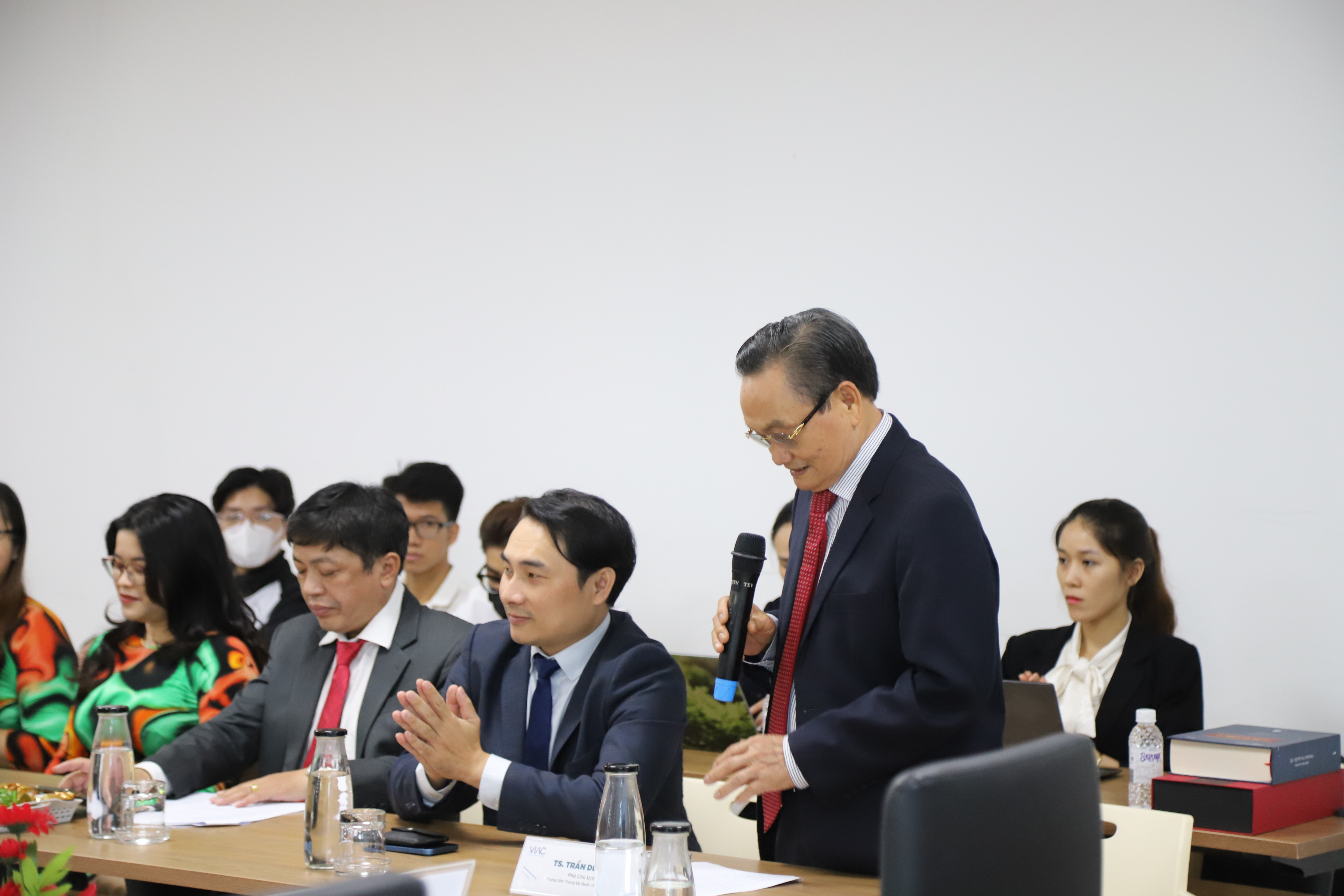 Tiếp nối phần trình bày của TS Đinh Quang Khải, TS Trần Du Lịch - Phó Chủ tịch Trung tâm Trọng tài Quốc tế Việt Nam bày tỏ sự vui mừng trước sự kiện quan trọng này giữa UEH và VIAC. Đối với Đại học Kinh tế TP. HCM, VIAC và UEH đã có nhiều lần hợp tác, cử đại diện tham dự sự kiện của nhau và đến hôm nay, với sự thống nhất cao, hai đơn vị đã chính thức quyết định cùng ký kết biên bản thỏa thuận hợp tác. Ông nhận định đây là dấu mốc quan trọng, tạo tiền đề vững chắc để hai tổ chức đưa ra các ý tưởng, xây dựng các hoạt động, chương trình nhằm phát huy tốt thế mạnh hai bên, cùng với đó là đem đến những thông tin hữu ích, quý giá cho các giảng viên, sinh viên, doanh nghiệp, luật sư… Được biết, trường Kinh tế, Luật và Quản lý nhà nước là trường thành viên của Đại học Kinh tế TP. Hồ Chí Minh, tập trung chủ yếu vào các lĩnh vực liên quan đến tài chính công, quản lý nhà nước, pháp luật, môi trường, hoạch định chính sách… trong khi đó, VIAC là tổ chức có uy tín lâu đời trong lĩnh vực giải quyết tranh chấp, hỗ trợ pháp luật cho doanh nghiệp. Với những điểm chung, ông tin rằng, sự phối hợp giữa VIAC và trường Kinh tế, Luật và Quản lý nhà nước trong thời gian tới sẽ có nhiều điểm sáng, đóng góp được rất nhiều cho cộng đồng về phương diện pháp luật trên cơ sở nghiên cứu cũng như thực tiễn.