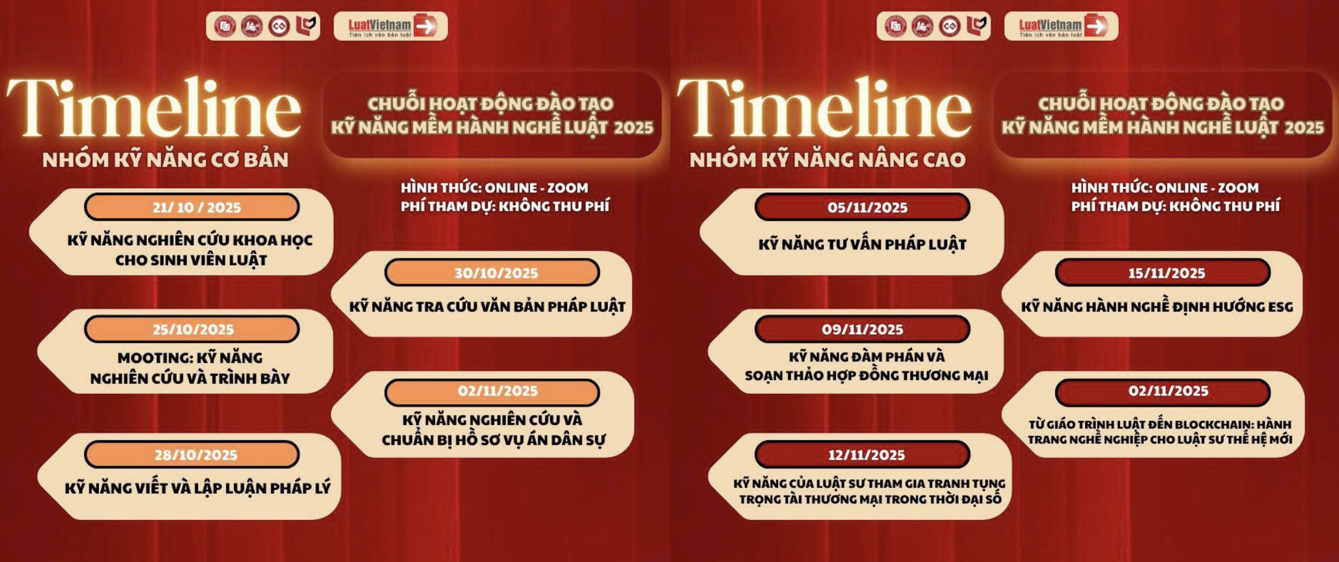 Chuỗi đào tạo kỹ năng mềm được chia làm hai mảng lớn với 10 buổi học dành cho học sinh, sinh viên có niềm đam mê với ngành Luật và người hành nghề Luật, bao gồm hai phần chính: